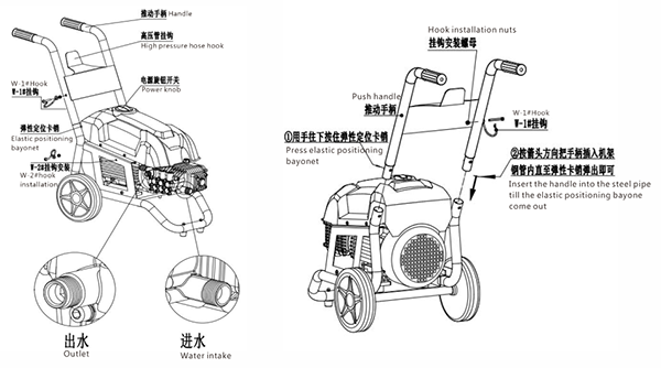 该清洗机采用专用电机通过三根曲轴驱动三缸柱塞。其结构连续紧凑,性能可靠,体积小,外形采用金属薄板结构和高档喷塑处理,使用更安全。本机具有智能电源过载、低压、高压、电机缺相、电机偏相、缺水及机械过载保护功能,并具有停机及软启动功能。用户可根据需要选择搅拌机,提高清洗效果。在使用混合器时,应将喷嘴改为喷射位置(我公司的多功能喷嘴)。如果在使用混合器时选择了错误的喷嘴功能,就不能自动吸取混合液。