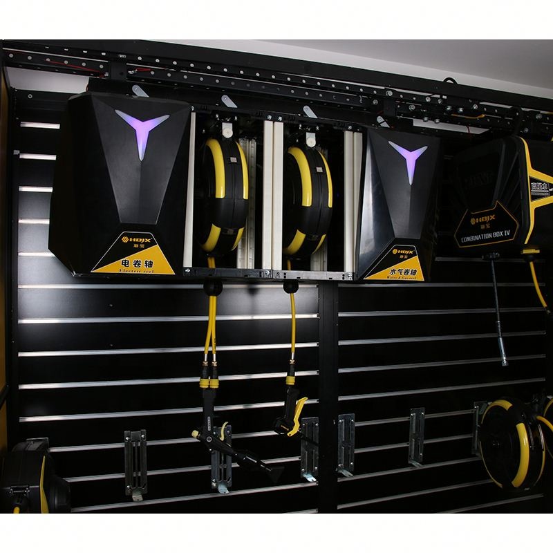 Combine kinds of hose reel to meet different requirements, much more convenient to operate. Pressure cleaning, foam cleaning, blow dust or any electricity usage are all available by this combo cabinet.