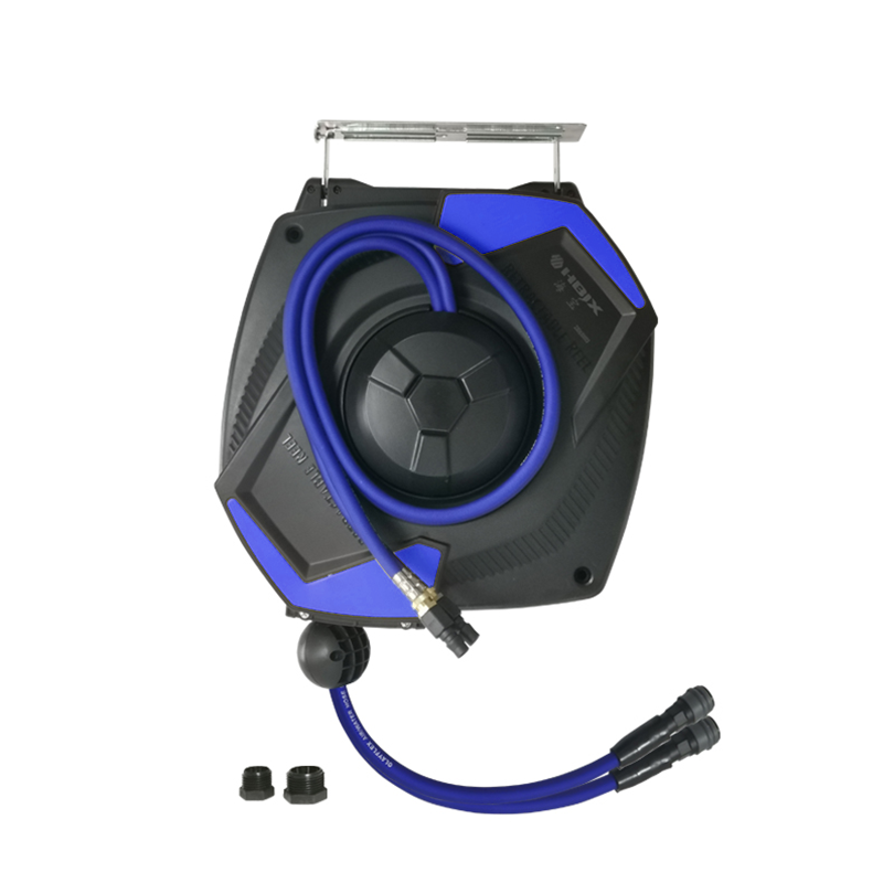 The air&water dual hose reel is combinated two hoses, used for pressure foam cleaning without foam containtor under the pressure of air and water. Also could be used for soft clean in car wash store.