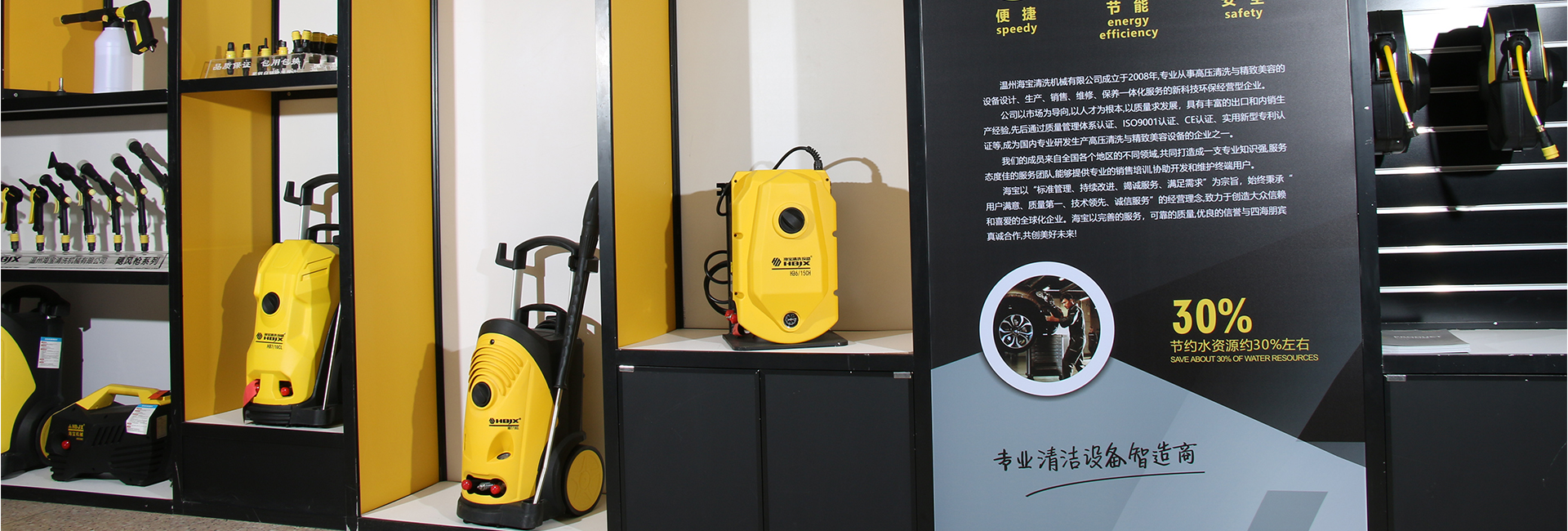 Zhejiang Sea Treasure Machinery Co., Ltd(HBJX) is a technology-based eco-friendly enterprise with the most complete products line in China, specializing in high pressure washer, hose reel, ceiling boom arm, vacuum cleaner, cleaning guns meet various markets demand. Our products are widely used in the car washing stores, hotels, animal husbandry, factory, garden, petrochemical, mechanical and electrical industries.