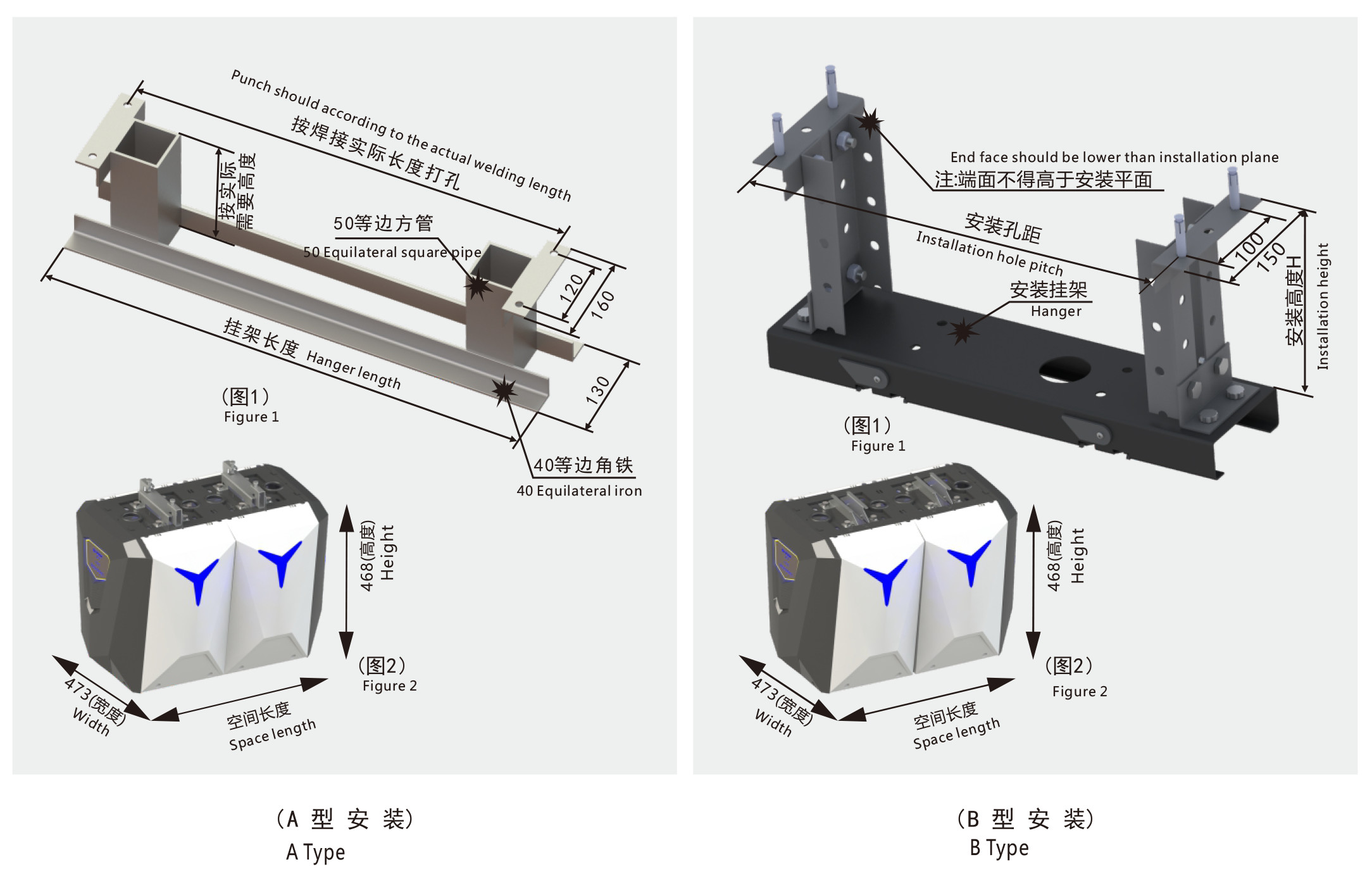 角铁支架制作标准(图1)单位:mm